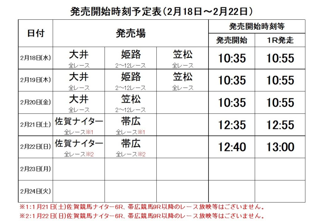 2月11日(水)~2月17日(火)の発売時刻予定