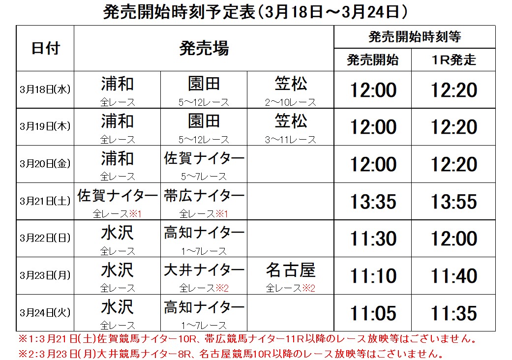 3月11日(水)~3月17日(火)の発売時刻予定